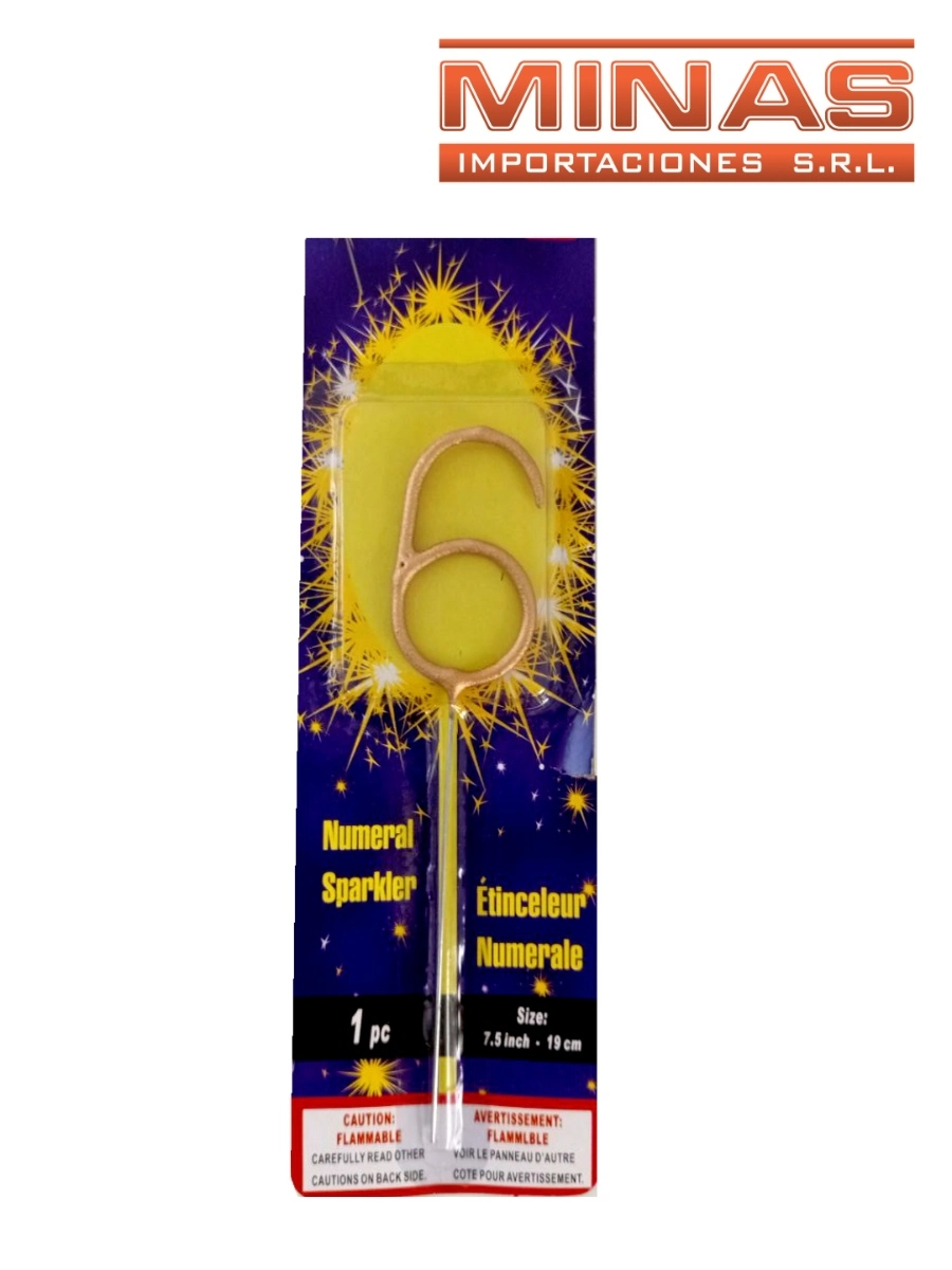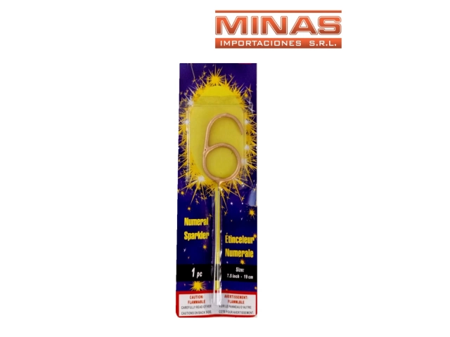 VELA BENGALA X 19 CM, EN FORMA DE Nº 6.