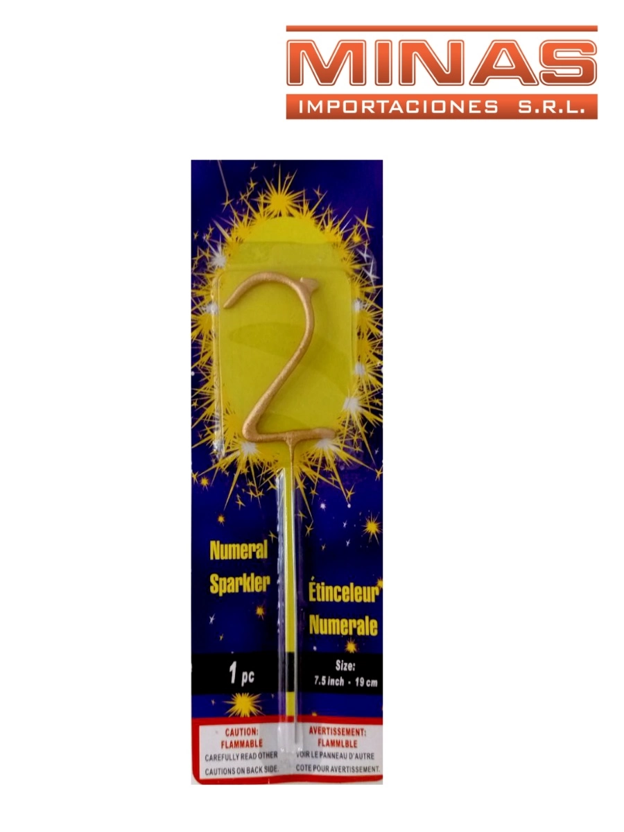 VELA BENGALA X 19 CM, EN FORMA DE Nº 2.