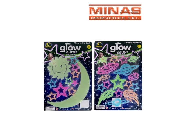 SET DE ESTRELLAS, LUNA, SOL Y PLANETAS,ADHESIVAS,FLUORESCENTES, 3 DISEÑOS.