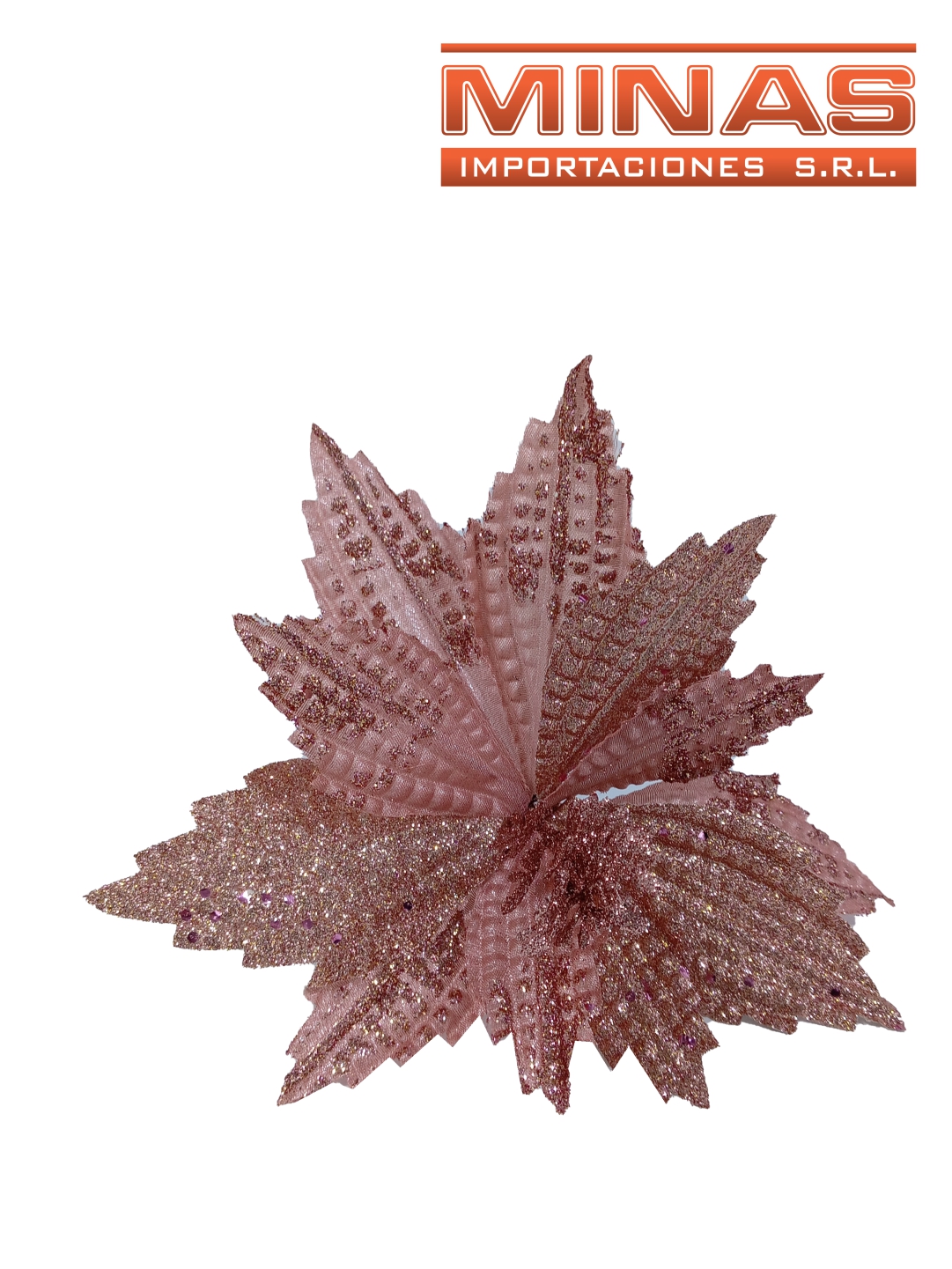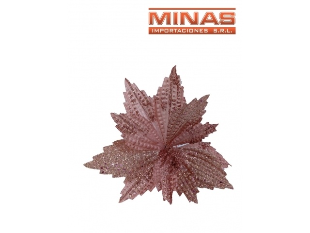 FLOR NAVIDEÑA X 25 CM, ROSA GOLD CON BRILLANTINA.