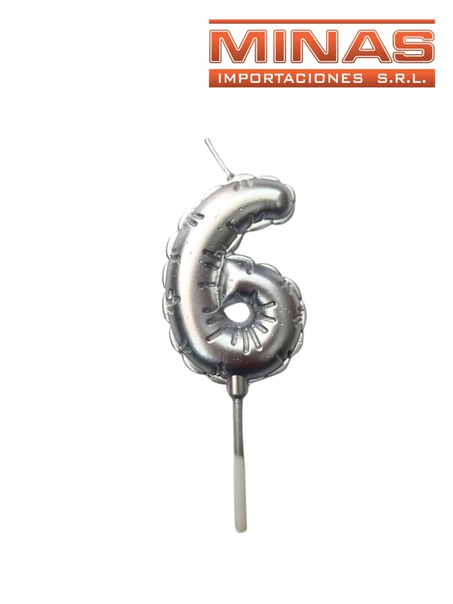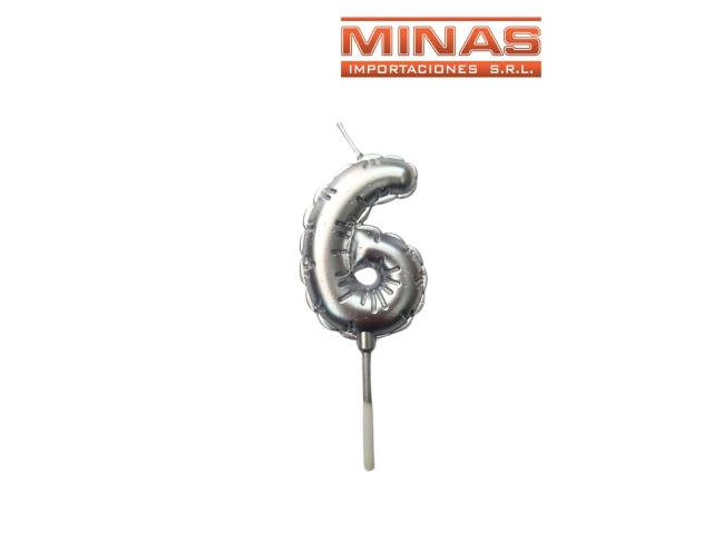 VELA NUMERO 6 PLATEADO