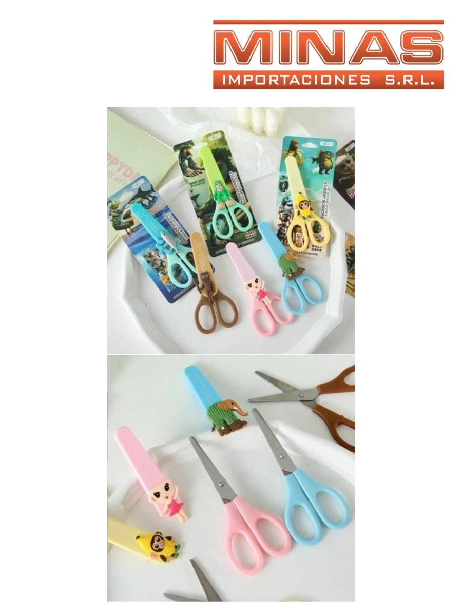 TIJERA ESCOLAR SIN PUNTA, RAINBROT, 6 DISEÑOS.