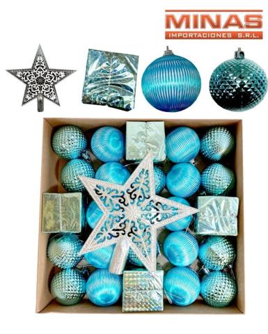 Esf. nav x 25 pcs. + estrella,turquesa.