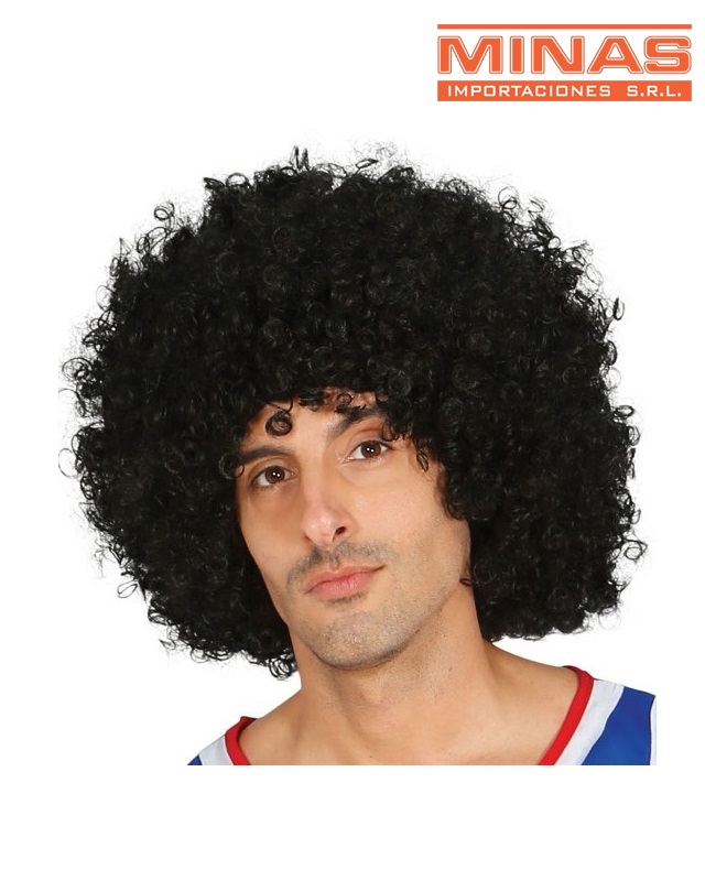 Peluca negra con rulos.