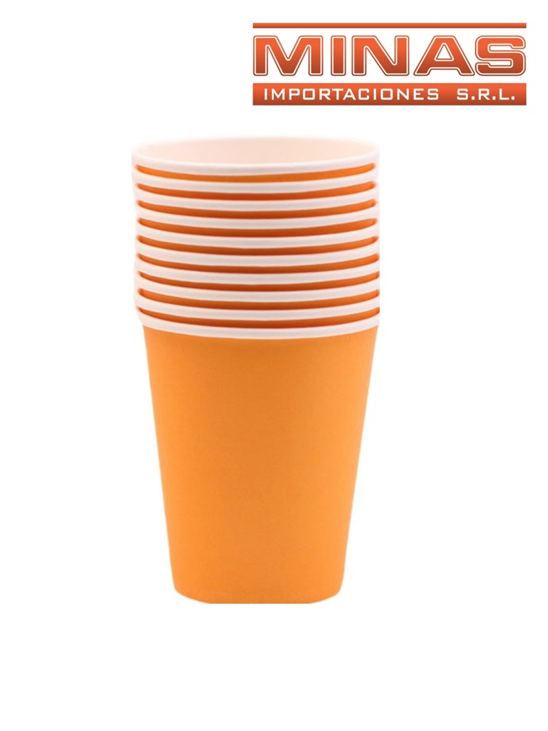 Vasos descartables de 250 ml x 10 und,naranja.