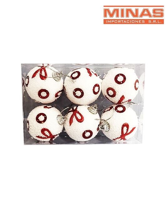 Adorno de nav. blanc/roj 5 cm x 6 pcs,c/u 12.