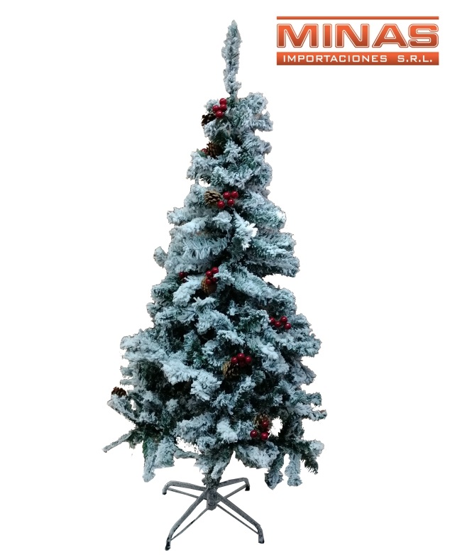 Arbol standard + nieve, con piñas y bayas x 150 cm, 340 ramas, con base de metal. Código SKU MI3810-1 Cajón cerrado por 1 unidad