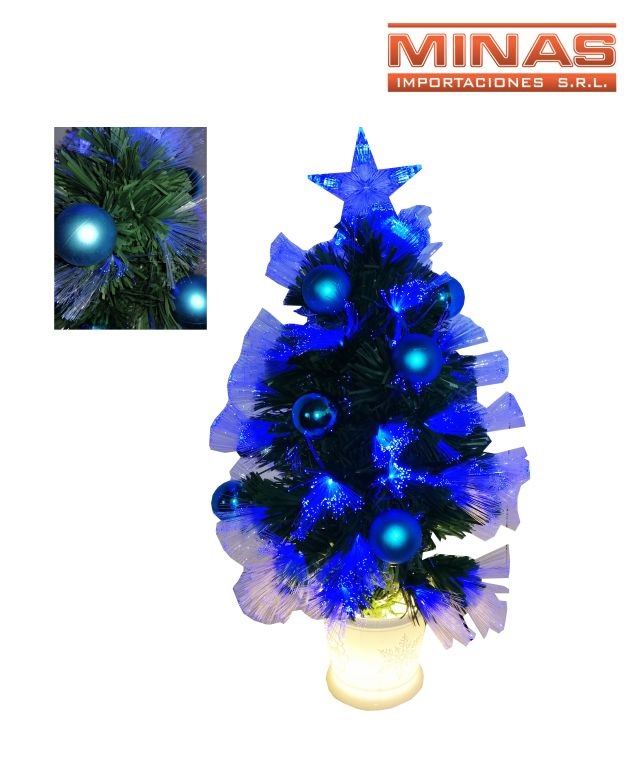 Arbol verde con f. optica azul y adornos azules x 60 cm. Código SKU MI7897 Cajón cerrado por 0 unidades