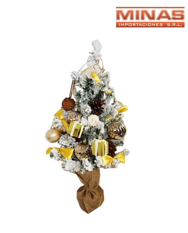 Arbol verde con nieve y adornos variados x 60 cm.