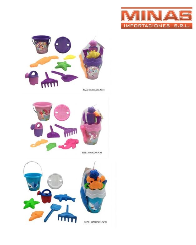 Balde + regadera + 7 acc., 3 diseños.