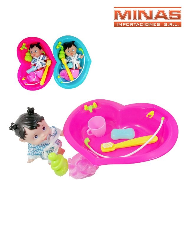 Bañito corazon + muñeca con bata + 5 acc.