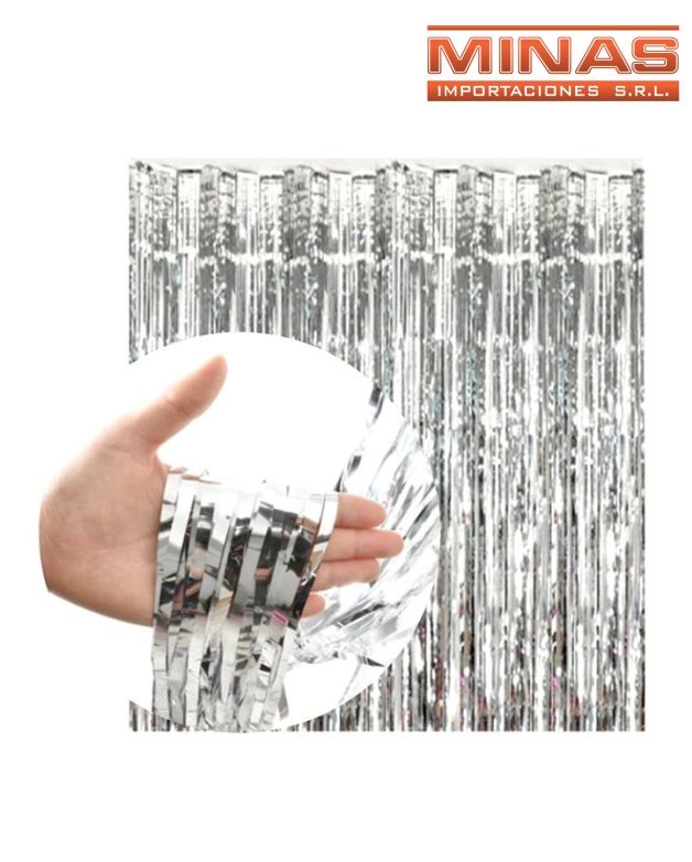 Cortina para fiesta 1 m x 2 m, plateada.