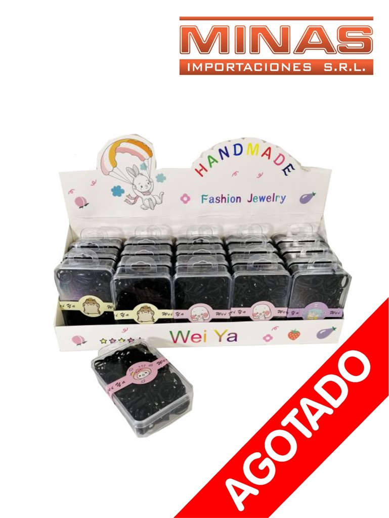 Display gomitas p. trenzas,negras x 20 cajitas, $ 30 c/u. Código SKU MI7705 Cajón cerrado por 50 unidades