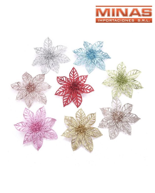 Flores navideñas de 14 cm x 4 und, surtidas.