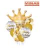 Globo con corona x 9 pcs,aluminio y latex.