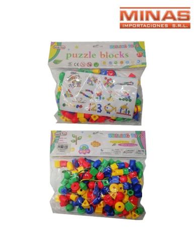 Juego didactico formas,de enebrar x 500 gr.