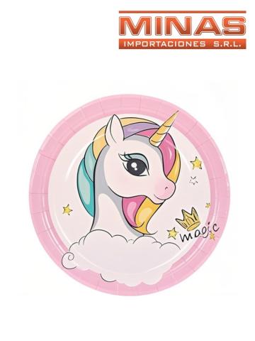 Platos descartables de 18 cm x 10 und,unicornio.