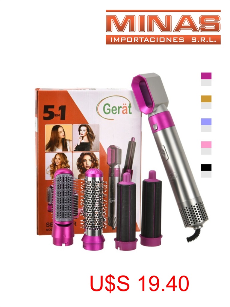 Secador y rizador 5 en 1,1000 w.,5 colores.