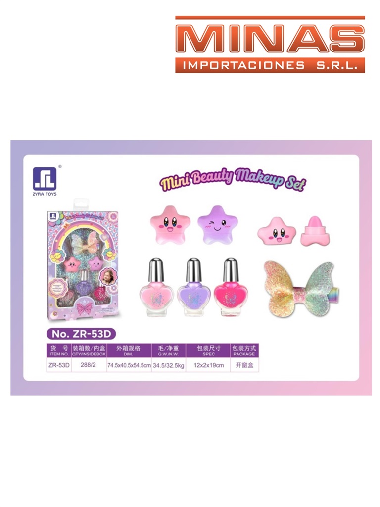 Set de 3 esmaltes + 2 labiales + pincita de pelo.
