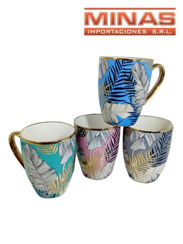 Taza de ceramica x 350 mi, de color con hojas.