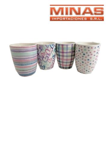 Taza de ceramica x 350 ml, rayas y corazon.