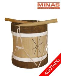 Tambor de madera cuero y palos 17x17cm.