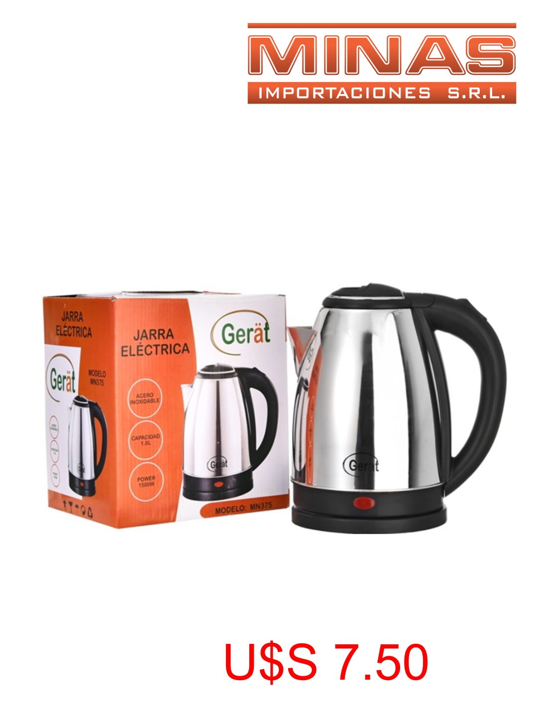 En stock En stock JARRA ELECTRICA X 1.8 L, 1500 W,AC. INOX, BLANCA. Regístrate para ver $ precios Cód.MN376