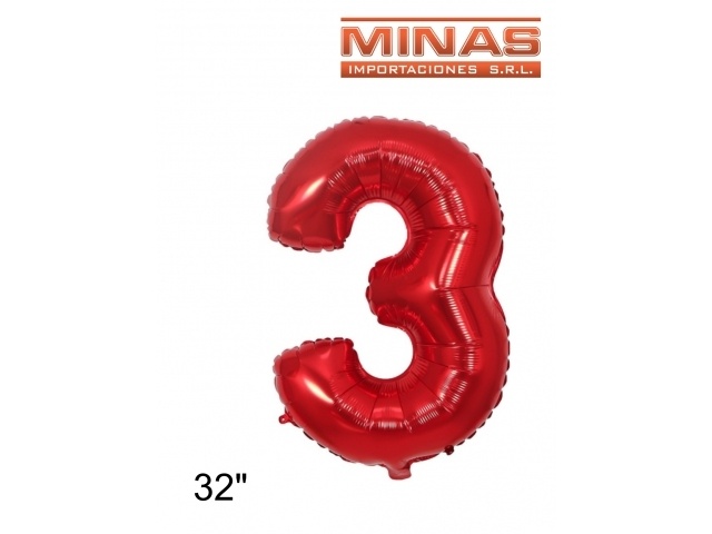 GLOBO Nº 3, DE 32" EN BOLSA,ROJO.