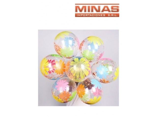 GLOBOS FLUOR NEON X 10 UND,CON FLORES, BRILLAN CON LUZ UV.