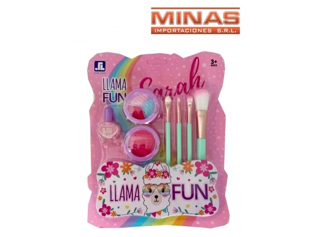 MAQUILLAJE LLAMA , SOMBRAS + RUBOR + 4 BROCHAS Y ESMALTE.
