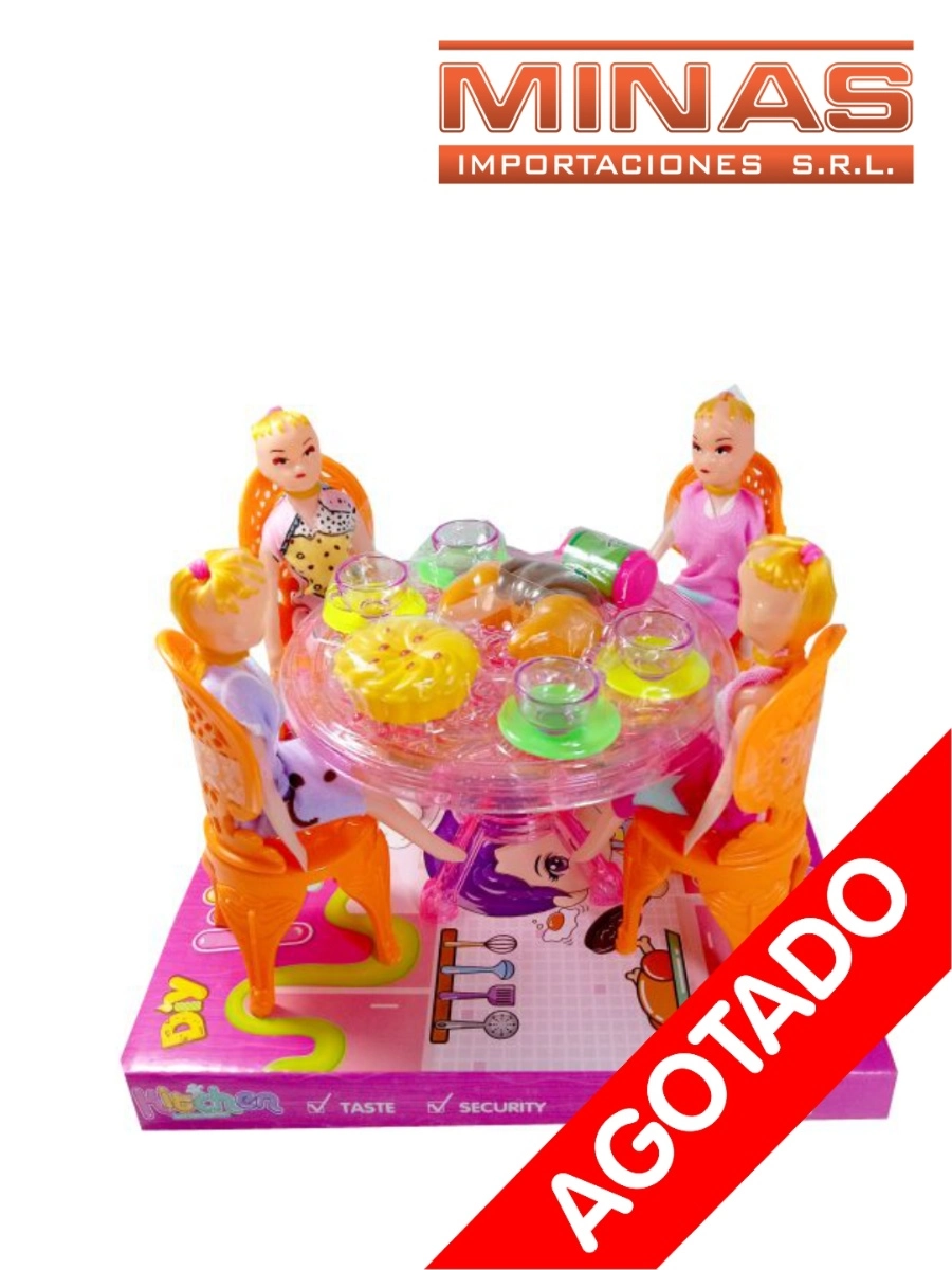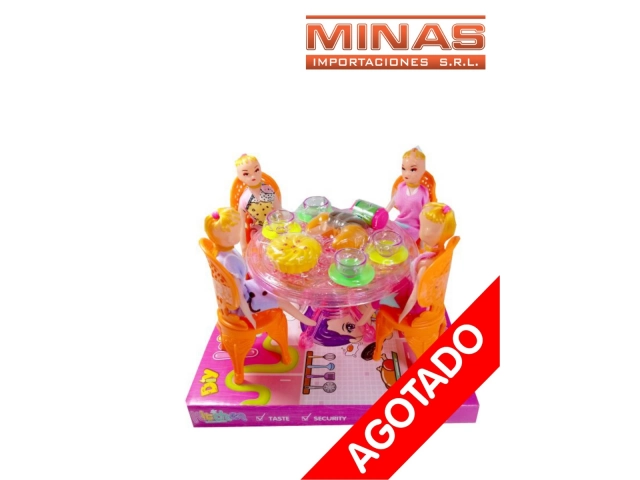 SET DE MESA + 4 MUÑECAS + ACCESORIOS.