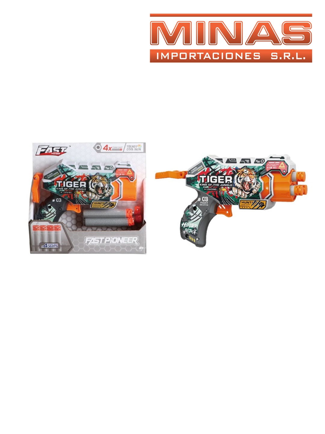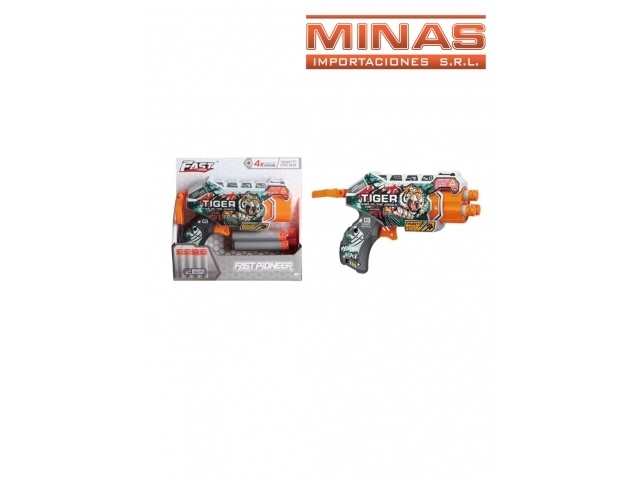 ARMA FAST PIONEER TIGRE, 16 CM + 4 DARDOS DE GOMA EVA.