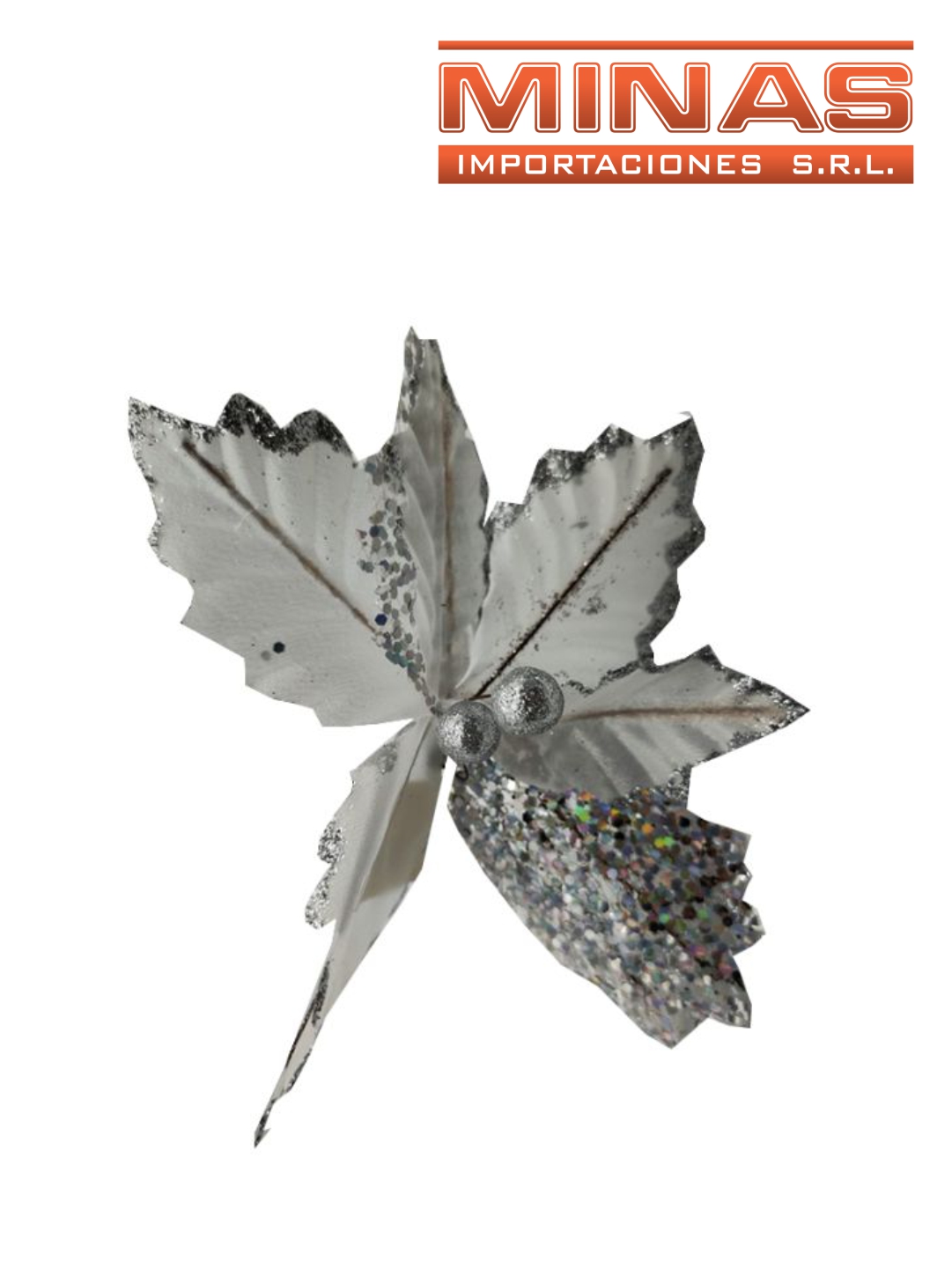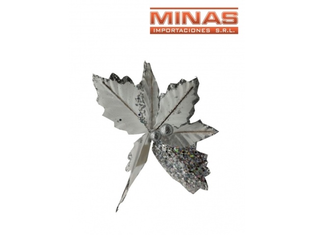 FLOR NAVIDEÑA X 20 CM, GRIS Y PLATEADO.