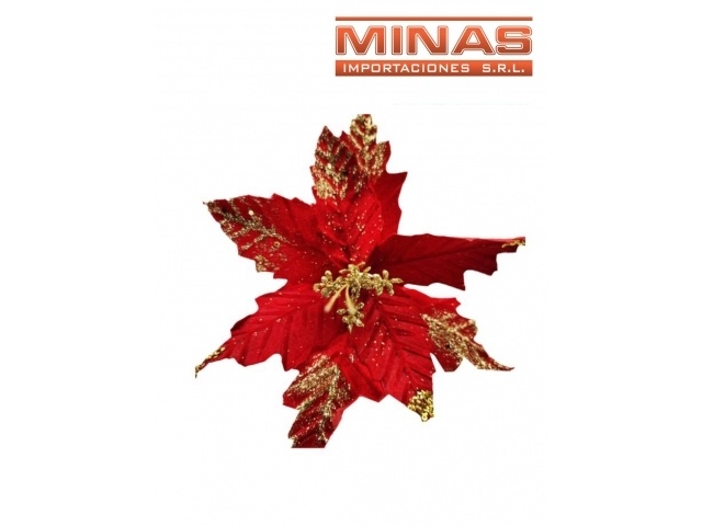 FLOR NAVIDEÑA X 22 CM, ROJO Y DORADO.