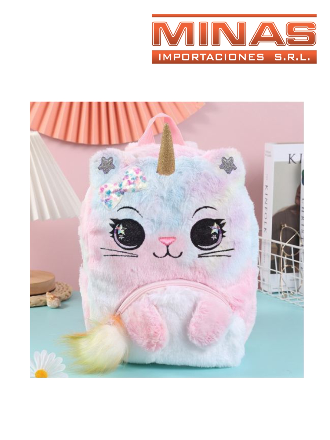 MOCHILA PELUCHE GATITA DE 30 CM X 33 CM, 4 COLORES.