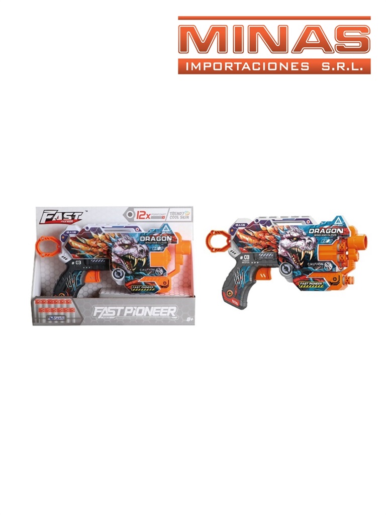 Arma fast pioneer dragon 27 cm + 12 dardos de goma eva. Código SKU JU1827 Cajón cerrado por 72 unidades