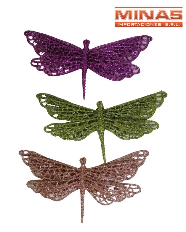 Libelulas navideñas de 17 cm x 3 und, surtidas.