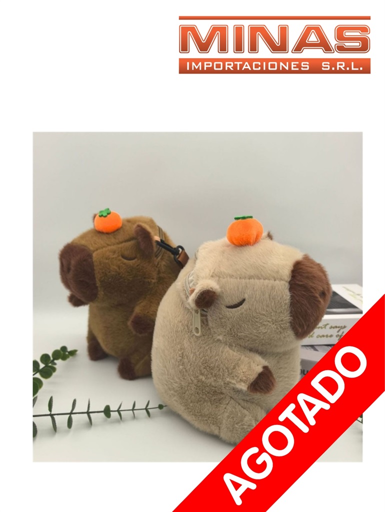 Mochilita capibara 25 cm x 20 cm x 15 cm, 2 colores. Código SKU MI8672 Cajón cerrado por 200 unidades