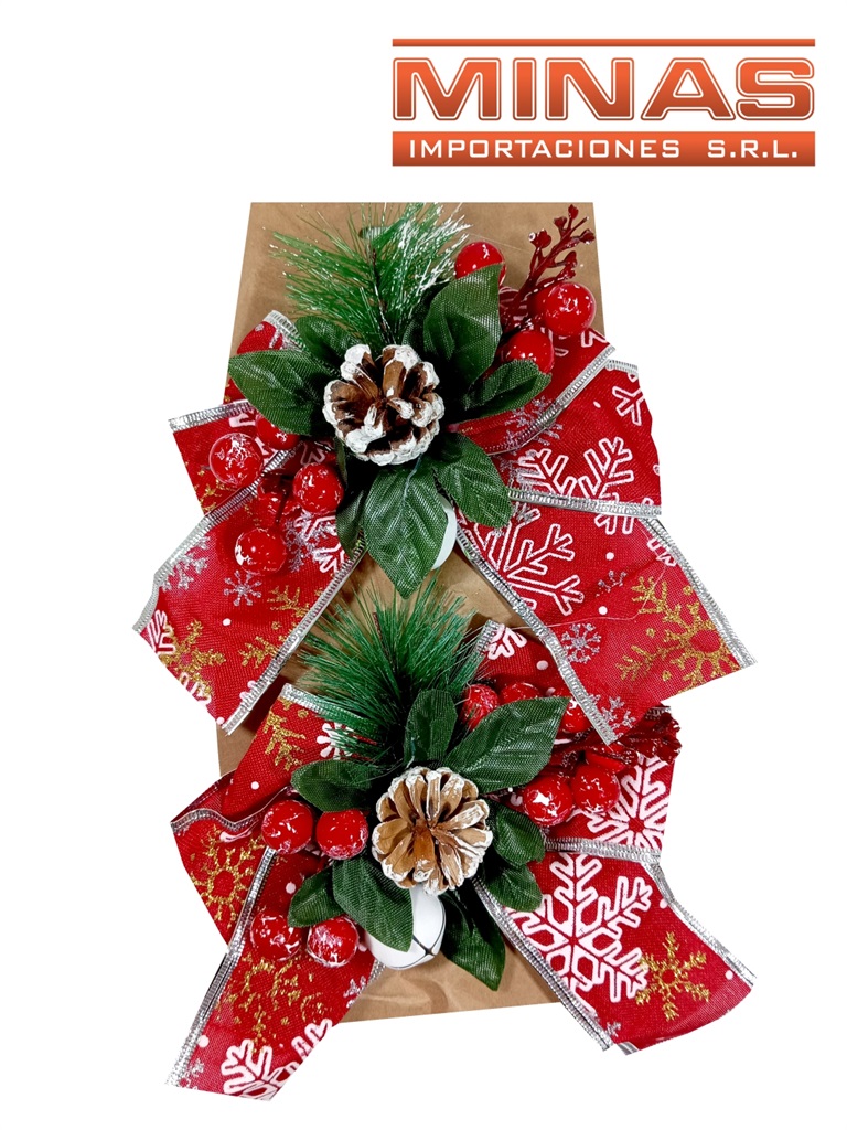Moña navideña roja con cascabel x 2 und.