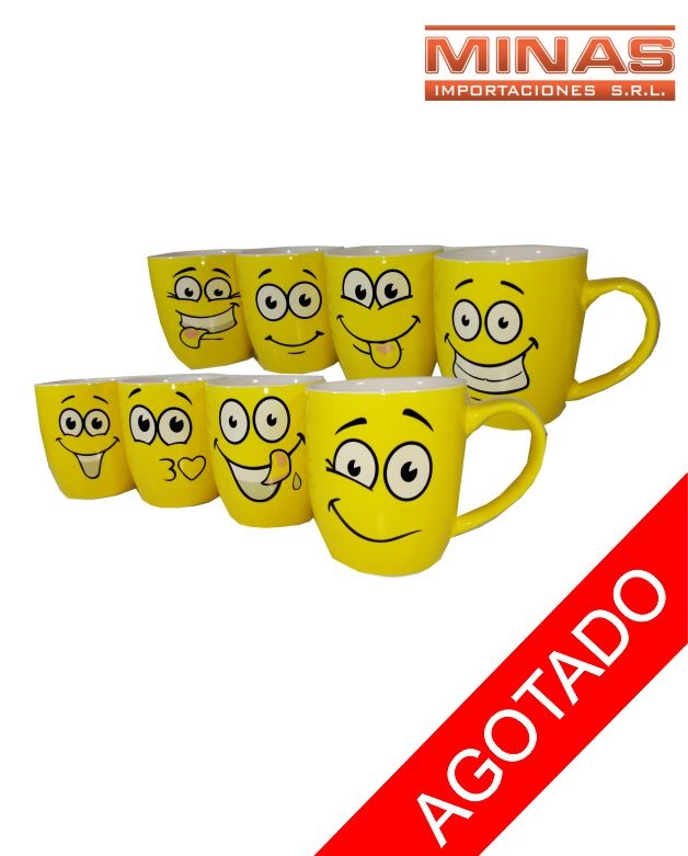 Taza caritas amarillas de 8.5 cm, 8 modelos, en caja. Código SKU MI7604 Cajón cerrado por 72 unidades